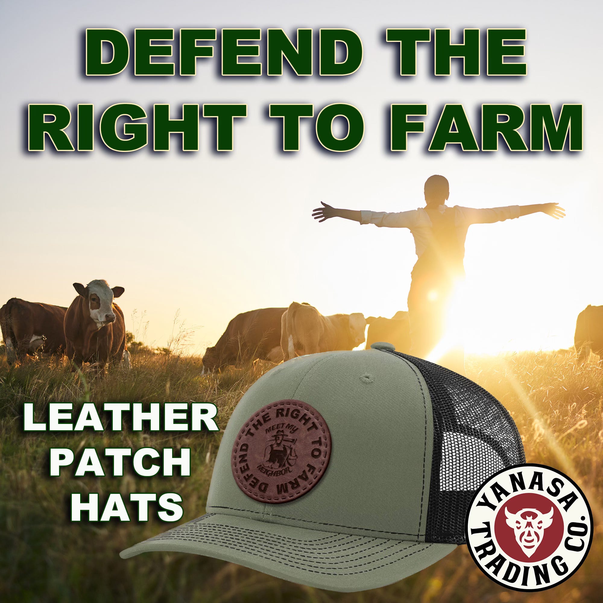 We're not just making a statement with a hat... We're using it to Defend the Right To Farm. Worn around the world, this is one hat that does more than sit on your head. It funds a movement. Defend The Right to Farm https://yanasatradingco.com/products/defend-the-right-to-farm-leather-patch-hat-pre-order