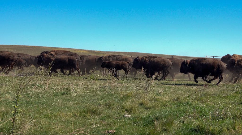 The producers of Native: The Prodigies of an Icon made their way east of Mission, South Dakota to film at Dakota Pure Bison—and let’s just say, this wasn’t your average tour of a bison ranch. There were baby bison nose boops, historical land maps, a crash course in sustainable grazing, and a freezer full of box designs for gas stations.