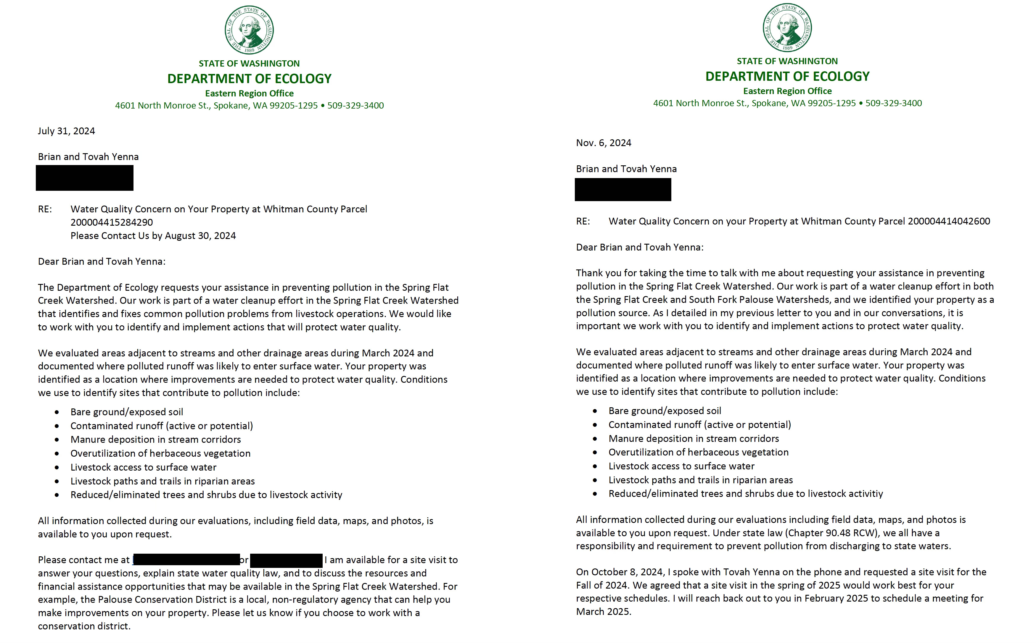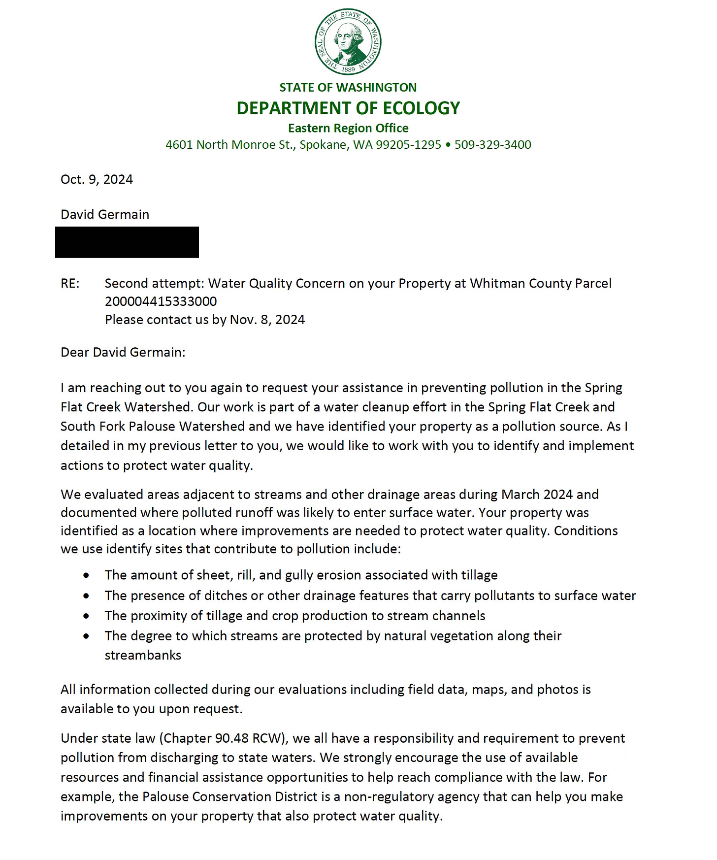 In 2024, landowners received nearly identical letters from the Department of Ecology: “We identified your property as a pollution source.” The basis? Visual indicators: sheet and rill erosion, bare soil, livestock access, tillage near waterways, reduced riparian vegetation.