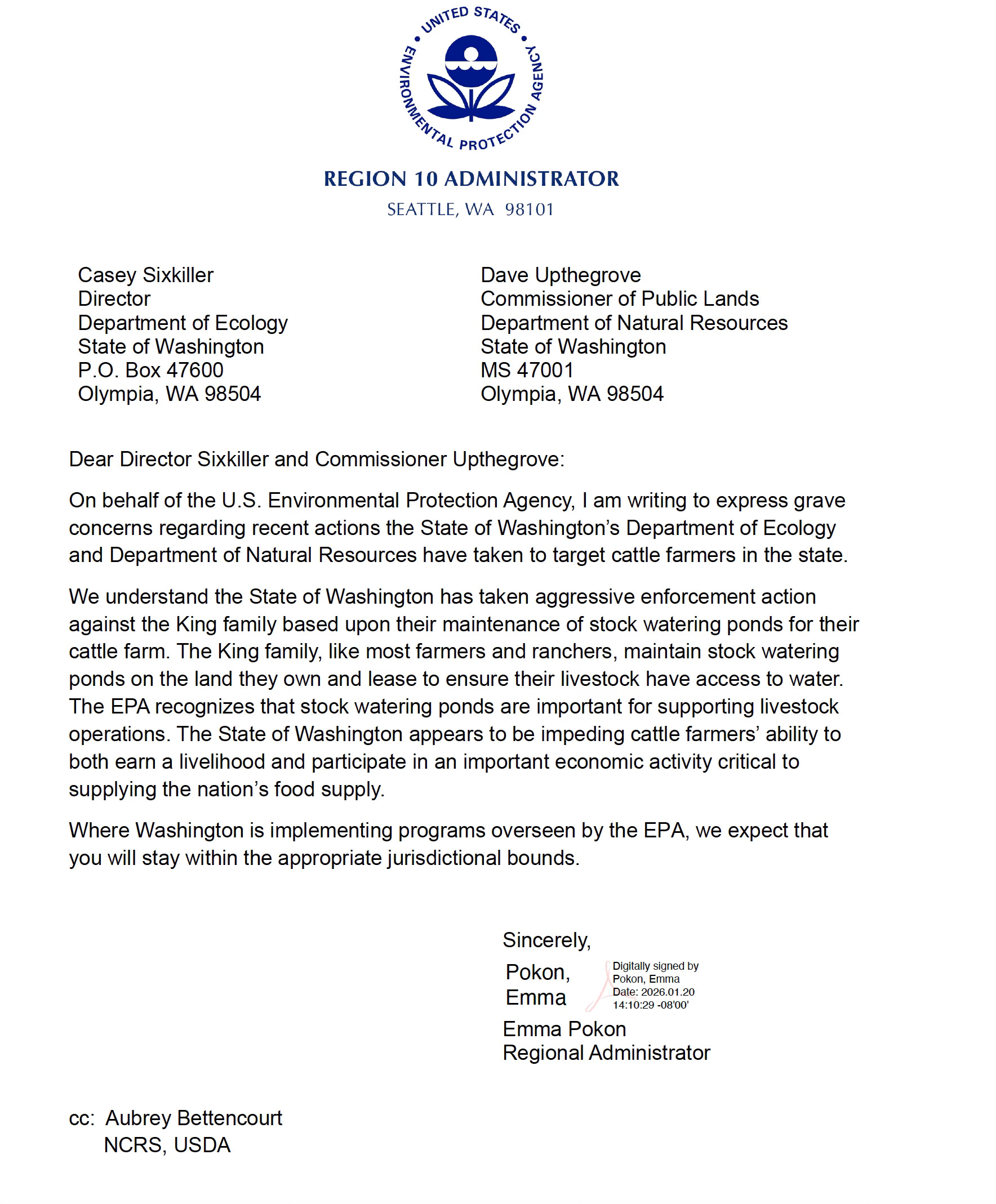 EPA Region 10 and the USDA have already signaled active review of how Washington administers programs within federal boundaries. Oversight here is not intervention — it is verification of alignment.
