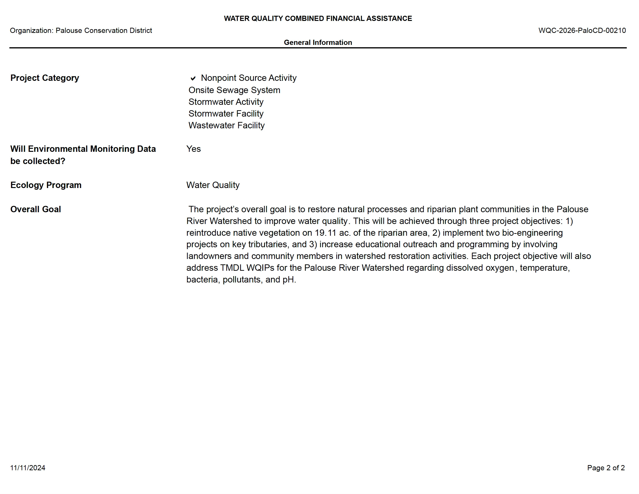 Grant documentation from the Palouse Conservation District confirms that federal §319 funds are integrated into watershed implementation efforts, with annual sediment and nutrient load reductions reported to EPA.