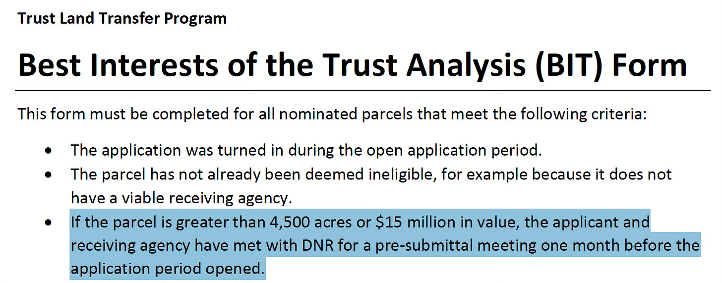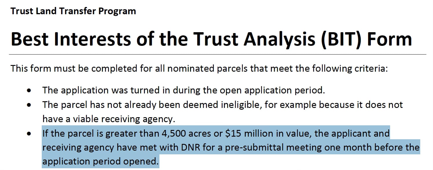 TLT guidance indicates that parcels above 4,500 acres trigger additional pre-application meeting requirements.