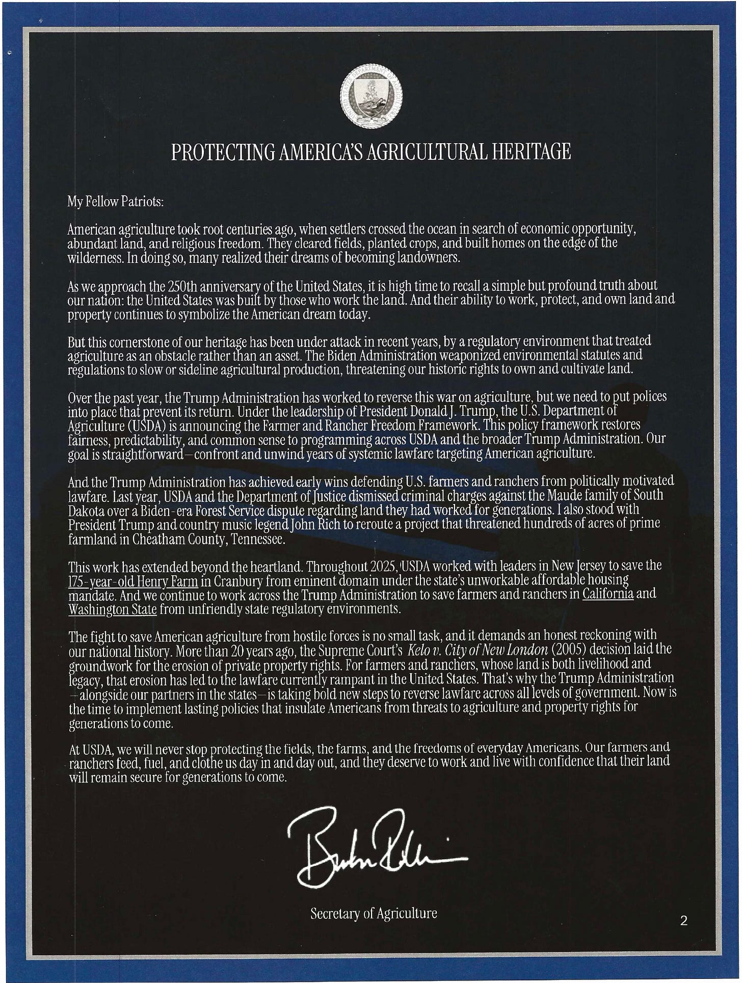Kelo, Consolidation, and the USDA Lawfare Framework: What Rollins’ Roundtable Signals for Property Rights and American Agriculture