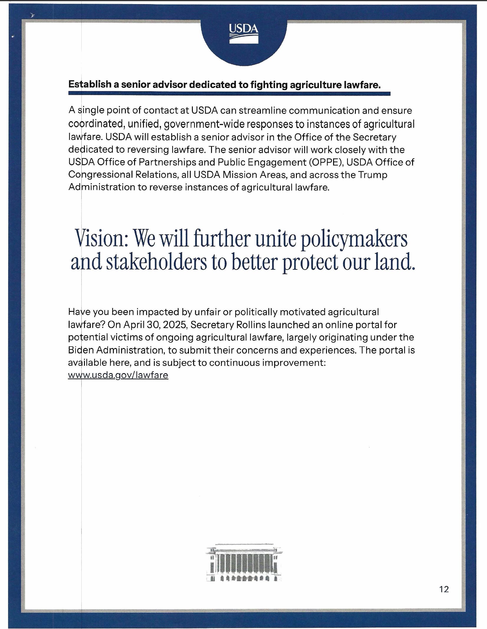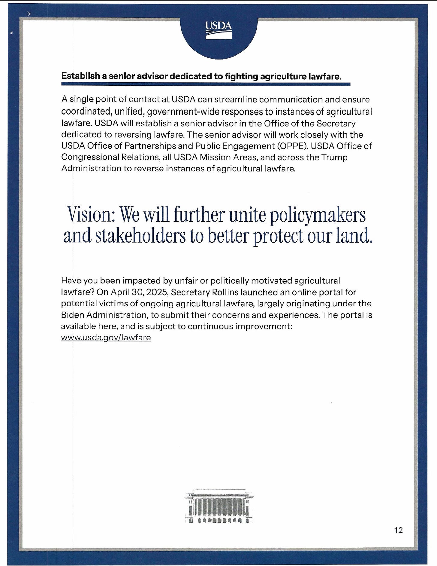 Creation of a senior advisor focused specifically on “agricultural lawfare”