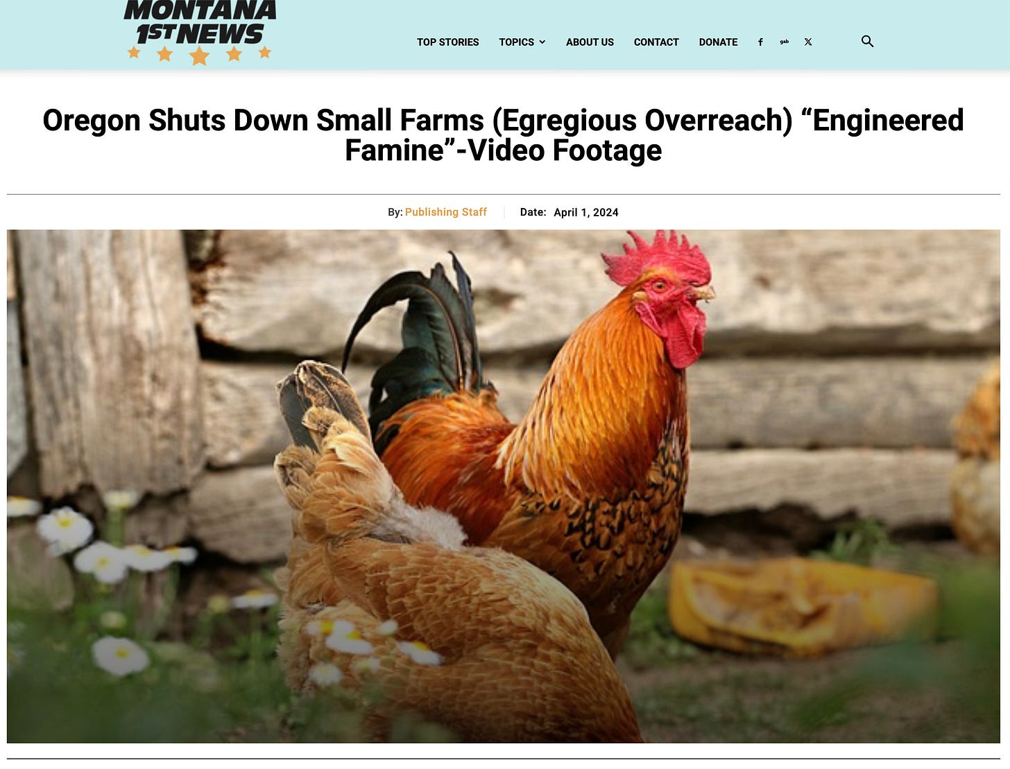 Yanasa TV, an independent media outlet dedicated to agricultural and rural issues, has been featured in Montana 1st News' recent article titled “Oregon Shuts Down Small Farms (Egregious Overreach) ‘Engineered Famine’.” The article highlights Yanasa TV's investigative reporting on the impact of Oregon's regulatory policies on small-scale farmers.