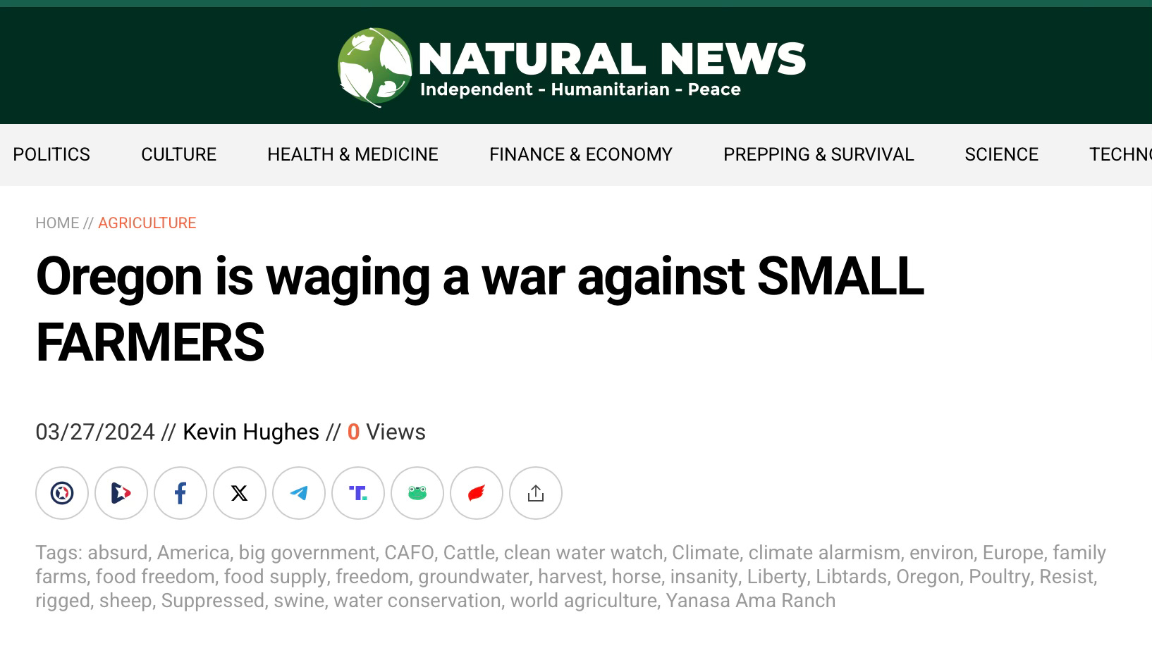 Yanasa TV Featured in Natural News for Exposing Oregon's Regulatory Actions Impacting Small Farmers